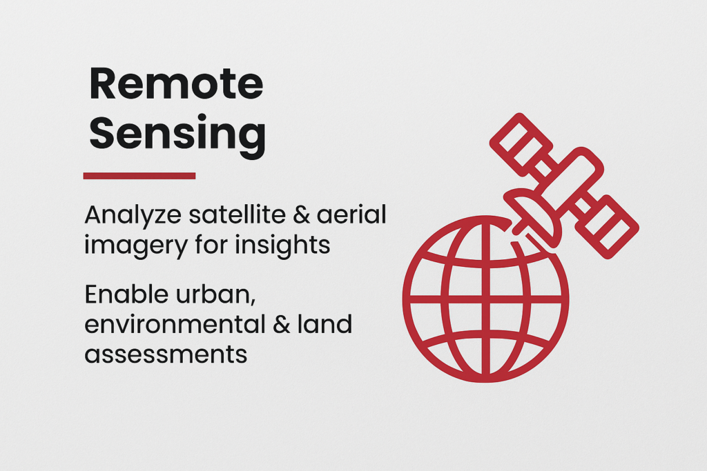 Through satellite and aerial imagery analysis, we deliver actionable insights for urban, environmental, and land assessments. Our remote sensing services help monitor resources and support sustainable development strategies.