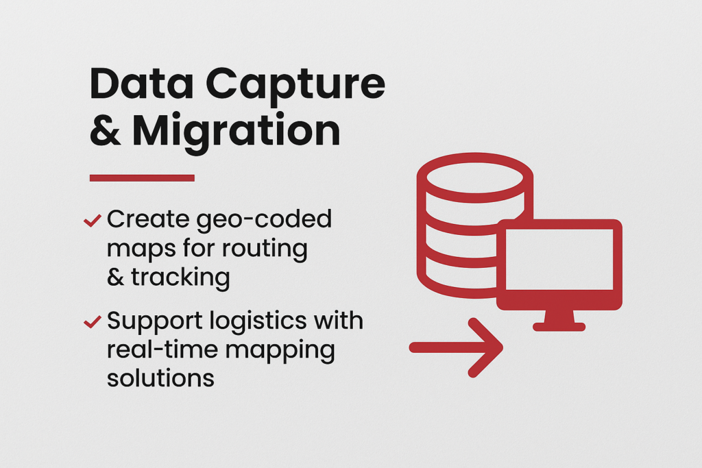 We offer seamless data capture and migration services, enabling organizations to consolidate and transfer critical geo-data with ease. Our solutions ensure smooth integration with routing and logistics platforms for better decision-making.